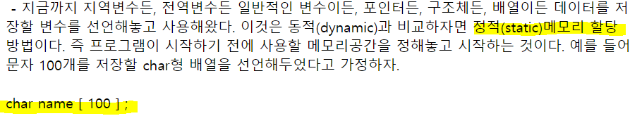* C를 배울때 보통 동적메모리할당은 후반부에 배운다. 이유인즉, 포인터, 배열, 함수 등 기본적인 내용을...