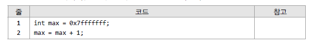 int형의 최댓값은 0x7fffffff(2,147,483,647)이며, 최솟값은 0x80000000(-2,147,483,648)이다. 엄밀하게 최대, 최소를 지정할 때 이 값을 이용하면 되며, 16진법을 이용하면 쉽게 처리할 수 있다.