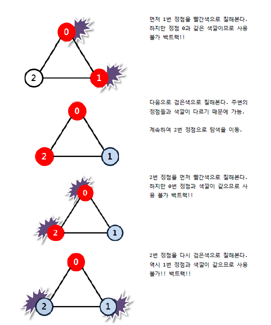 dfs( i, 1 ) // 그 정점으로 가서 1로 칠하고 나머지 연결된 부분 확인