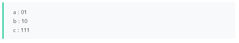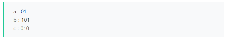 위 코드 대로라면 'abcd'는 00010100101로 표현한다