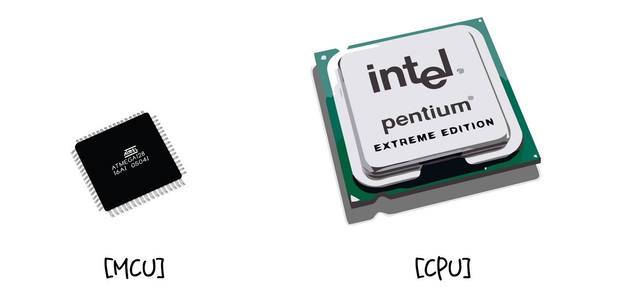 - MCU (Micro Controller Unit) : 마이크로컨트롤러라고도 부름. 일정한 용량의 기억장치, 입출력제어회로 등을 단일 칩에 모두 내장한 것을 의미. 1개의 소자로 완전한 1개의 컴퓨터로서의 기능을 갖추고 있음. 주로 아두이노(ATmega328)에서 많이 쓰입니다!!