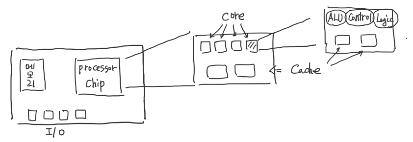 Processor chip 안에는 다음과 같이 3가지 종류가 있을 수 있겠습니다.