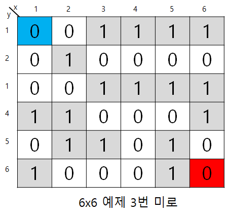 - 미로의 크기 및 미로 정보를 입력받는다.